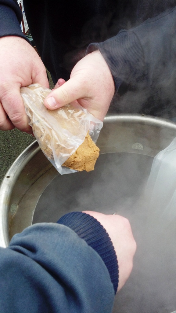 I wanted to document my process for those looking to experiment in the partial mash. The recipe can be found at www.brewtoad.com/recipes/gone-for-a-burton-partial-mash. This recipe takes advantage of Northern Brewer’s new Maris Otter liquid extract, which is great for a real traditional English flavor. I thought it was excellent! But I digress…