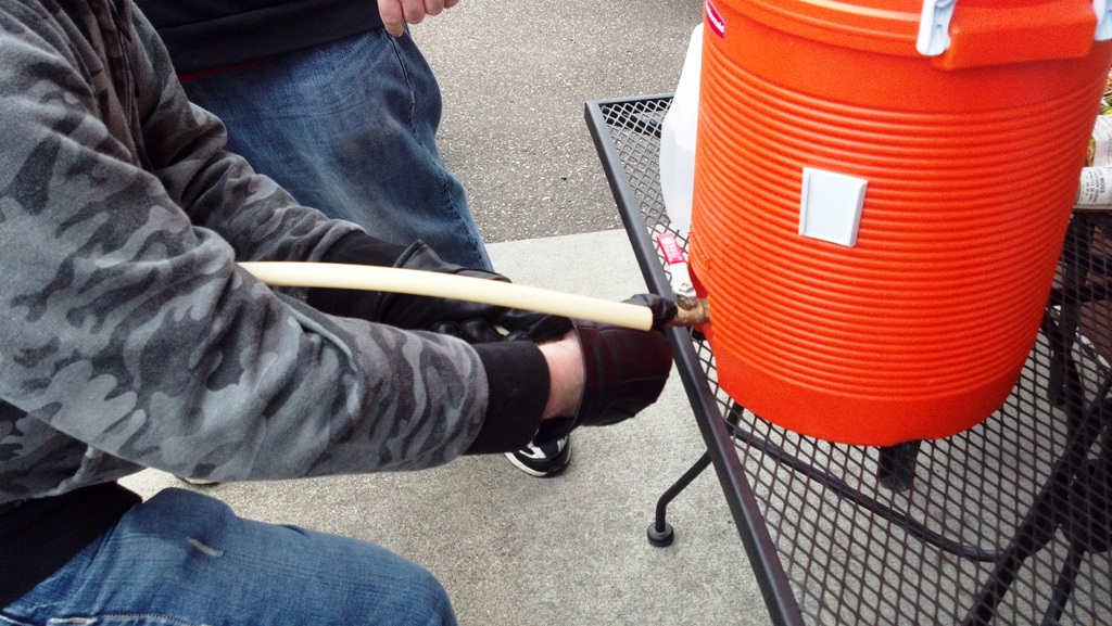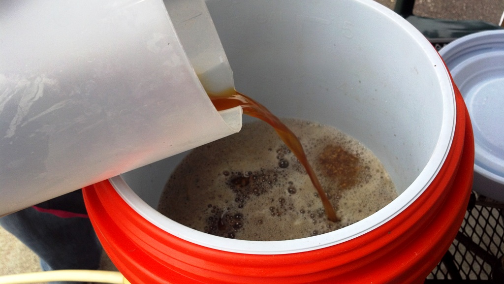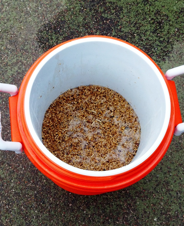 I thoroughly stirred in the grain so it’s fully hydrated. Typically I mash for 60 minutes. I’ve read that most conversion of the sugars complete in 20-30 minutes, but for complete conversion just wait for 60 minutes. This will ensure you don’t miss out on any of that tasty wort. Cooler mash temps will take longer (149-147) and will be more fermentable with less body. Higher temps (154-158) will be less fermentable and create a richer and fuller body. I wanted a lower final gravity so I mashed cooler.