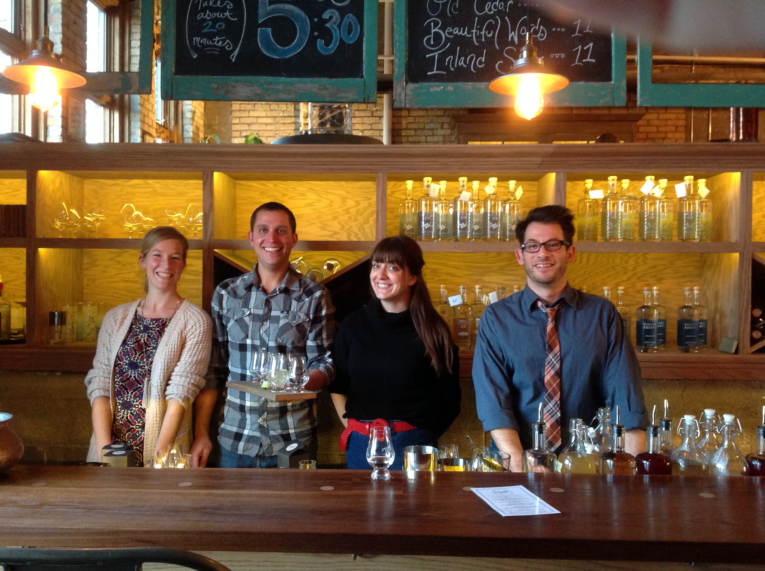 I sipped the three gins and the aquavit with and without tonic & water in my tasting flight. I also noted that they would make you cocktails with their spirits for even more variety. If we sampled beer I’d go a lot further into a review, but as my spirits knowledge is limited, I’ll defer to the American Craft Spirits Association. The ACSA awarded Vikre two silver and a gold for their gin in 2014 (I told you they were award winning). I’m a realist: my experience is limited, so what I can say honestly is that I liked them. If a busy venue is a measurement of success, than I can share that the place was indeed busy, even for a soft open! Word was out and the locals were all smiles.