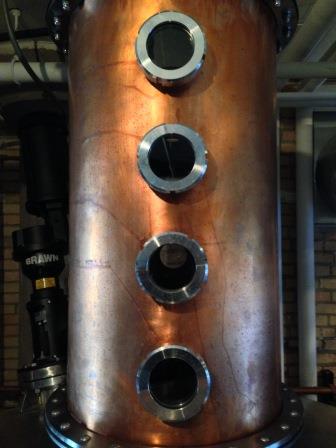 Joel shared a few interesting stories as we walked around - like how the small still found its way here from Washington State, and how any distiller worth their salt is also a good plumber, the radical building modifications they made to installing equipment, and how even with the full support of the mayor, it still took months to circumnavigate the readings and hearings and ordinances and permits. I was only partially listening - rude, I know - but my full attention was captured by the delicate web of copper tubes weaved between the stills with their glass-plated viewing ports which aroused the steam punk lover in me.